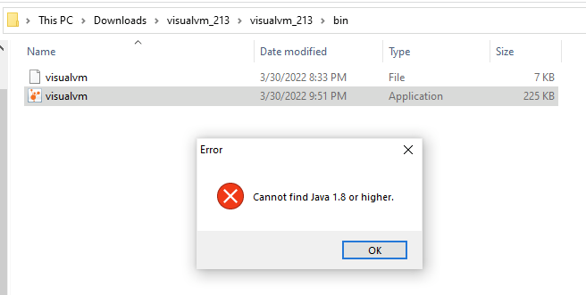 然后,您需要导航到visualvm_xxx->bin文件夹中的实际应用程序(其中xxx是版本号)