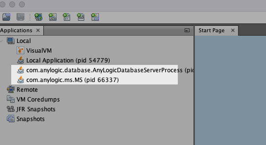 启动应用程序时,VisualVM的主窗口打开。应用程序窗口默认显示在主窗口的左窗格中。应用程序窗口使您能够快速查看在本地和远程JVM上运行的Java应用程序。