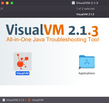 此后,您只需从应用程序文件夹中运行应用程序。但是,您需要在运行Visual VM的机器上安装Java。您可以从各种来源下载Java版本,在这里可以找到Oracle的最新Java版本。