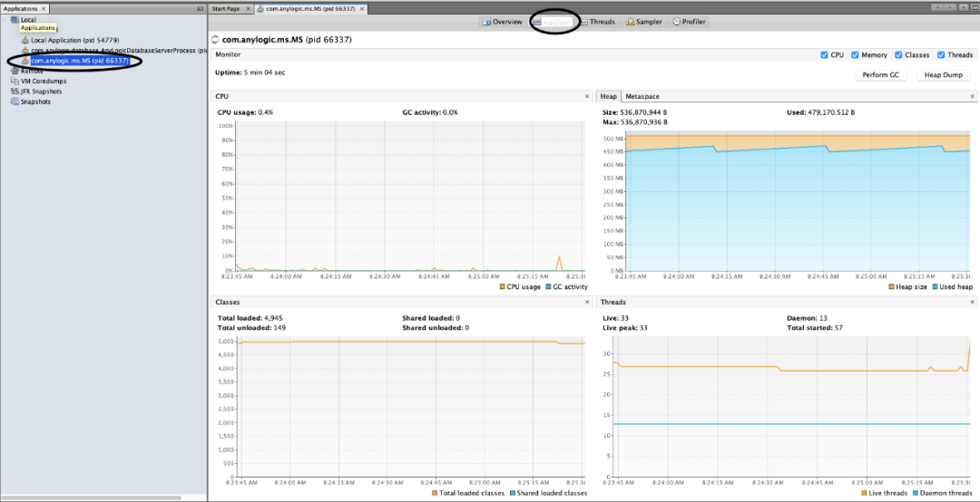 仅供参考:使用VisualVM Monitor视图监视应用程序